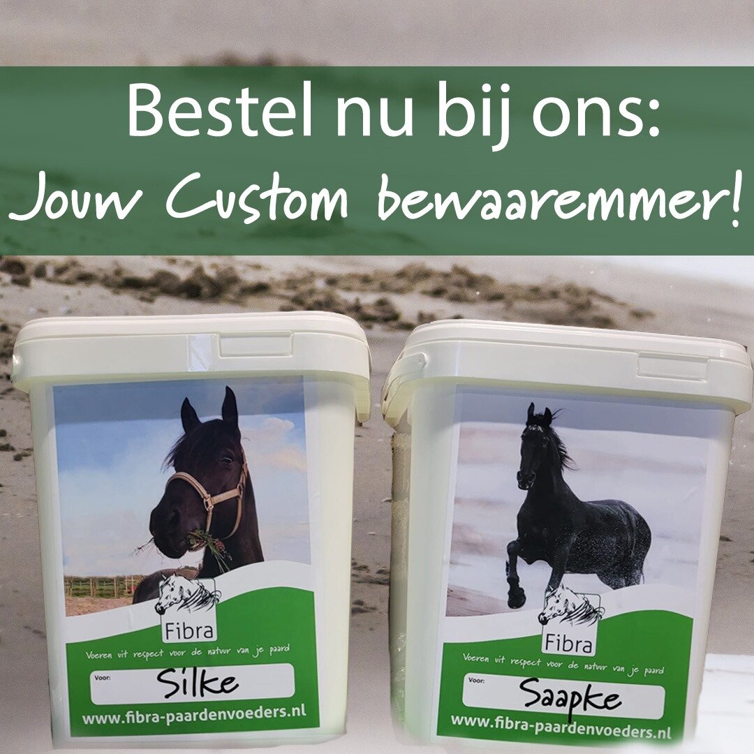 Hoe uniek! Een handige Fibra bewaaremmer met je een foto en de naam van je eigen paard erop! In de emmer past precies 7 kg Fibra Balancer.